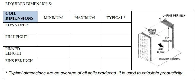 Thorough and accurate preparation of the following information will provide the necessary information required to select the proper types and capacities of all required production equipment. Please complete one Requirement Sheet for each tube specification.