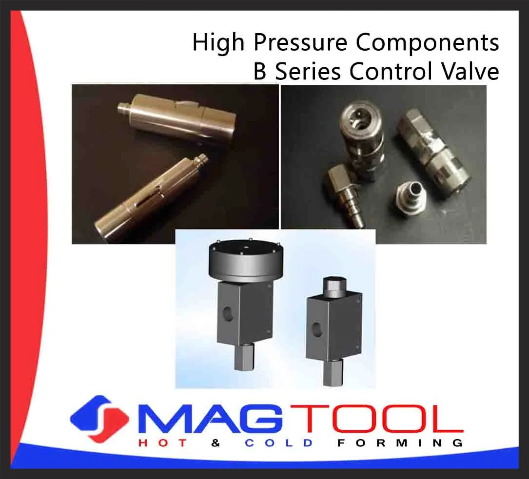The “B-Series” hydro tools have lever actuated collets for easy placement onto the tube. This assures a safe positive grip during initial pressurization of the tube. We offer an integral automatic air bleed valve option for the “B Series” tools. These valves are critical in assuring that the air is removed from the tube prior to full pressurization.