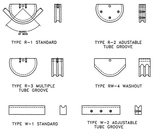 The adjustable tube groove ram die (R-2) is fabricated from two plates